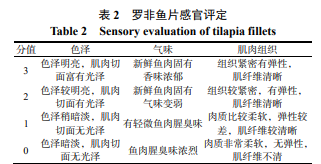 羅非魚是我國重要的淡水養殖魚類品種之一, 其在捕撈、運輸、宰殺過程中易受自身與外界因素 影響,導致營養價值和食用價值降低。冰溫保鮮 是一種既吸收了冷凍、冷藏技術優點,又克服了兩 者不足的保鮮技術。在冰溫貯藏條件下,微生物 生長受到阻礙,但仍會有許多嗜冷菌繁殖,因此單 純的冰溫保鮮維持魚片品質效果有限 。利用生 物保鮮劑對羅非魚片進行保鮮,可以彌補冰溫保鮮 不足之處,從而實現提高冰溫羅非魚片品質,延長 其貨架期的目的。