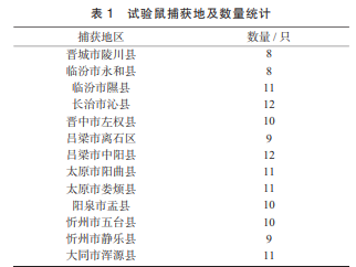 在野外捕獲活體長尾倉鼠后,取 其尾尖為 DNA 提取材料。捕獲地及數量見表 1。